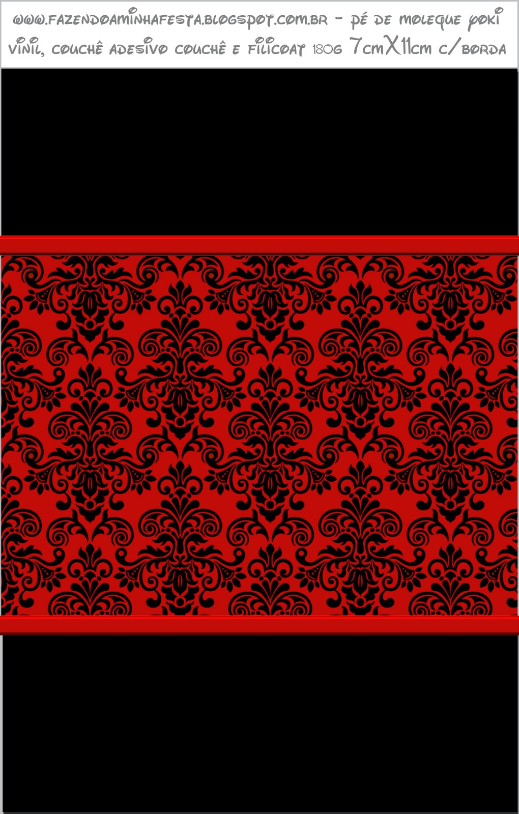 Lindas Etiquetas para Candy Bar para Imprimir Gratis. Para tu Fiesta de Damasco Negro en Fondo Rojo.