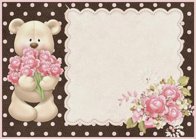 | Para hacer invitaciones, tarjetas, marcos de fotos o etiquetas, para imprimir gratis de Osito con Rosas. |