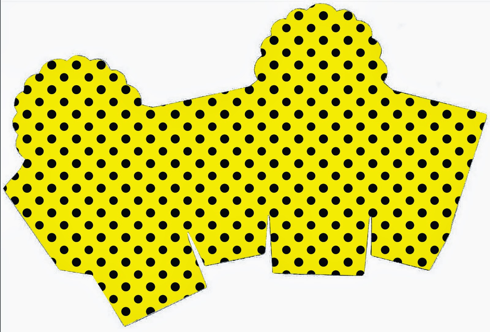 Bonitas cajas para imprimir gratis para Fiestas de Amarillo con Lunares Negros, que sólo tienes que personalizar, imprimir al tamaño que quieras, cortar, doblar, pegar y usar a tu gusto.
