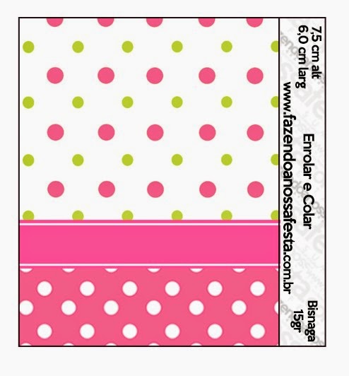 Lindas Etiquetas para Candy Bar para Imprimir Gratis. Para tu Fiesta de Lunares Rosa, Verde Lima y Blanco.
